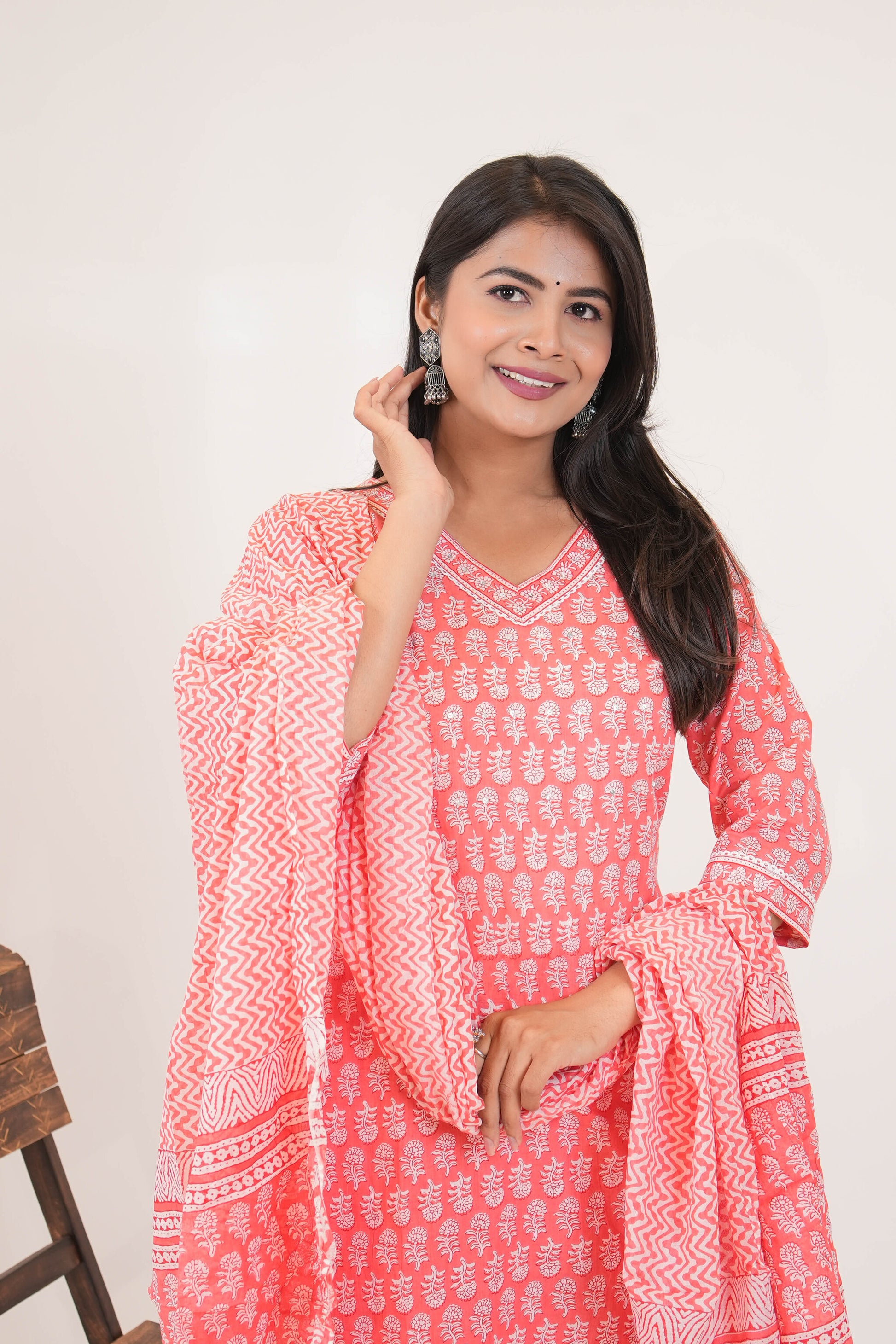 This Peach Kurta Cotton Set offers comfortable daily and casual wear with its breathable cotton fabric. Its soft peach color adds a subtle elegance, perfect for effortless style throughout the day. Ideal for warm weather, this set combines comfort and understated charm for a versatile wardrobe staple.